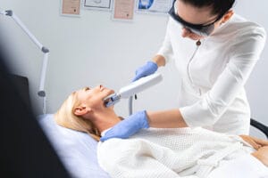 2. Preparation: The treatment area is cleansed, and protective eyewear is provided.